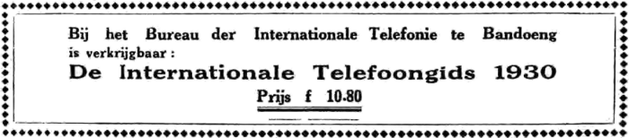 **) Dringend tarief is alleen verschuldigd, indien aanvragen worden ingediend na het openingsuur van den spreekdag; wordt voorrang verlangd boven de dringende gesprekken, dan is ijltarief verschuldigd. In het verkeer met Nederland kunnen aanvragen voor het voeren van een gewoon gesprek worden ingediend tot uiterlijk vóór den aanvang van den dienst op den dag waarop het gesprek gevoerd zal worden. Daarna kunnen nog slechts dringende c.q. ijlgesprekken worden aangevraagd. Nadere inlichtingen verstrekken de Hoofden der Telefoonnetten op Java en Madoera en het Bureau Internationale Telefonie (Telegramadres: "Intel Bandoeng" Telefoon No. Bd, 2173 en 1617).